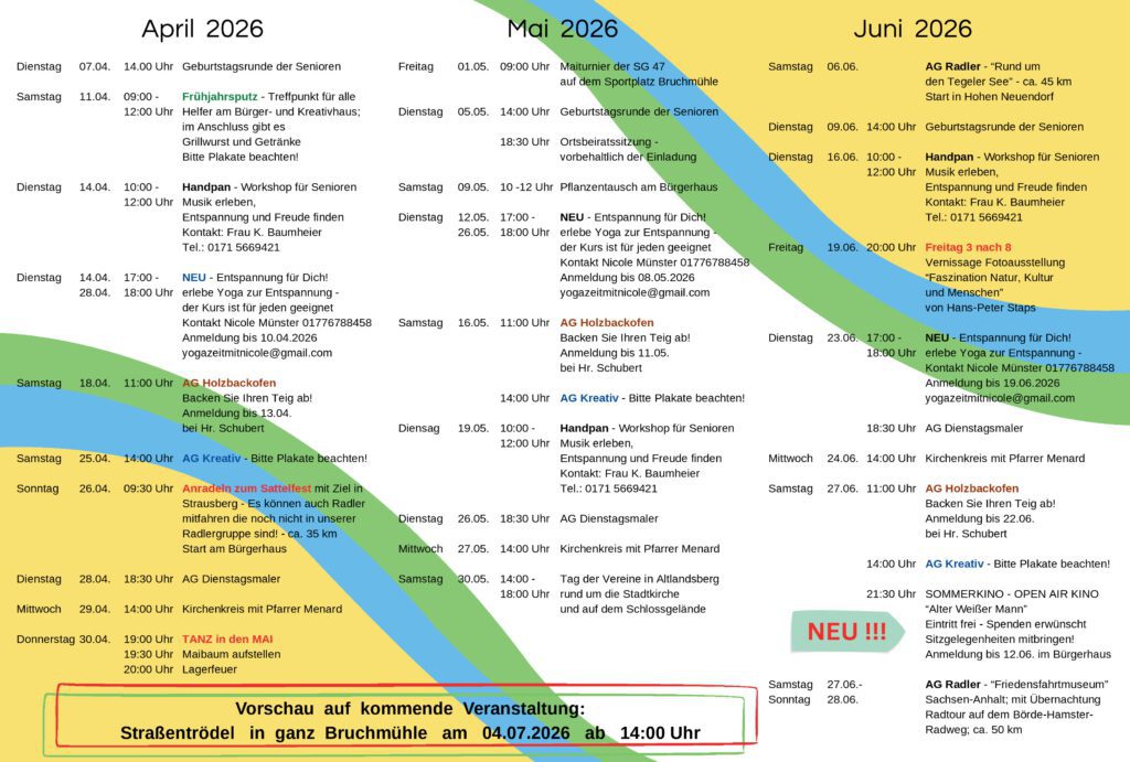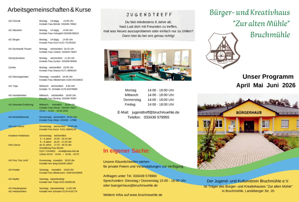 Flyer des Jugend-u. Kulturverein Bruchmühle e.V. II. Quartal 2026